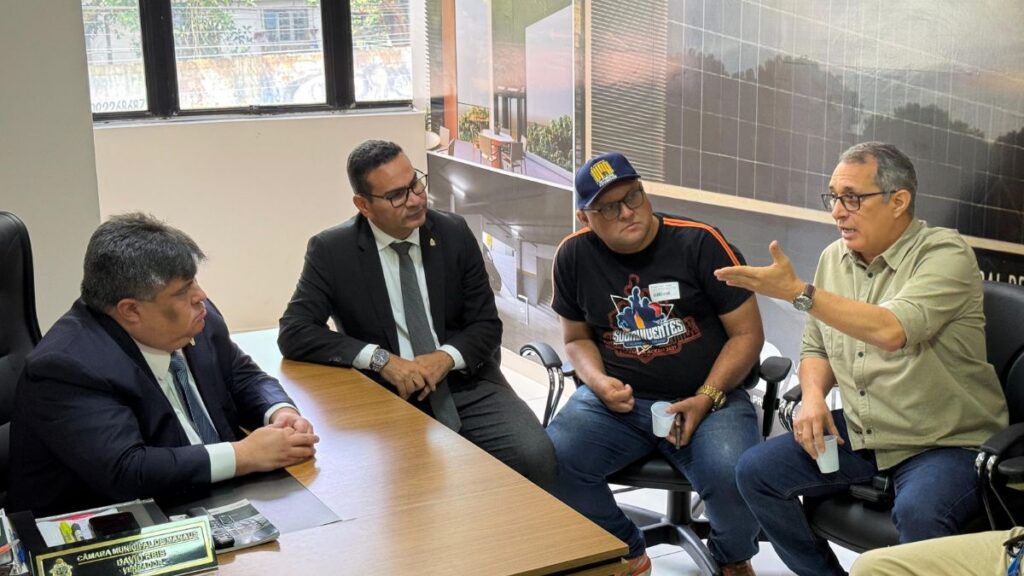 Nesta segunda-feira (19 de maio), o vereador Jaildo Oliveira (PV) recebeu representantes do Sindicato dos Vigilantes de Manaus (Sindevam) na Câmara Municipal de Manaus (CMM), em reunião acompanhada pelo presidente da Casa, vereador David Reis (Avante).