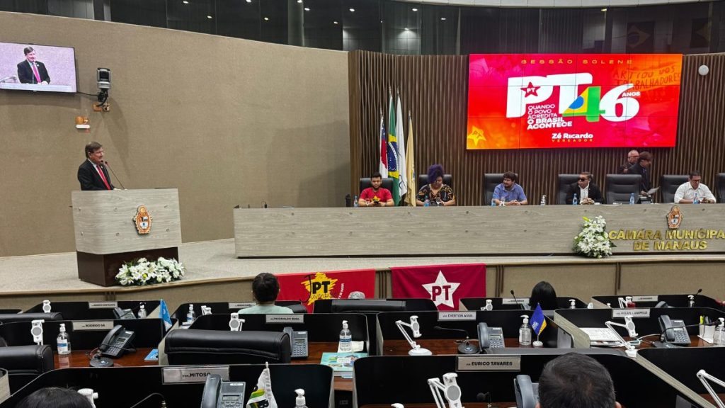 A Câmara Municipal de Manaus (CMM) realizou, nesta quinta-feira (5 de março), uma Sessão Solene em homenagem aos 46 anos de fundação do Partido dos Trabalhadores. A iniciativa foi do vereador Zé Ricardo (PT), que destacou a importância histórica do partido na luta por direitos sociais, pela democracia e pela valorização dos trabalhadores e trabalhadoras do Brasil.